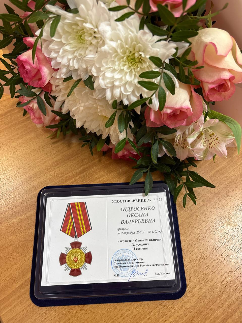 18 декабря на итоговом заседании Совета судей Пермского края лучшие представители судейского корпуса были отмечены ведомственными наградами. Награждение стало признанием их преданности делу и значительного вклада в развитие правосудия. За образцовое исполнение служебных обязанностей, конкретный вклад в развитие судебной системы, инициативу при исполнении служебного долга судье Косинского районного суда в почетной отставке Андросенко Оксане Валерьевне вручили знак отличия Судебного департамента при Верховном Суде Российской Федерации «За усердие» II степени. В октябре 2017 года Указом Президента Российской Федерации Оксана Валерьевна назначена на должность федерального судьи Косинского районного суда. Более 7 лет Андросенко О.В. вершила правосудие в Косинском районном суде. За время работы Оксана Валерьевна показала высокий уровень ответственности, профессионализма, дисциплины, стала примером для молодого поколения работников суда. С августа 2025г. Андросенко О.В. находится в почетной отставке. Оксана Валерьевна, коллектив Косинского районного суда поздравляет Вас с заслуженной наградой. Выражает Вам огромную благодарность за многолетние годы совместной работы, за большой личный вклад в развитие правосудия в Косинском районе, за преданность закону и судейскому долгу. Крепкого Вам здоровья, благополучия и неиссякаемой энергии на пути достижения новых жизненных целей.